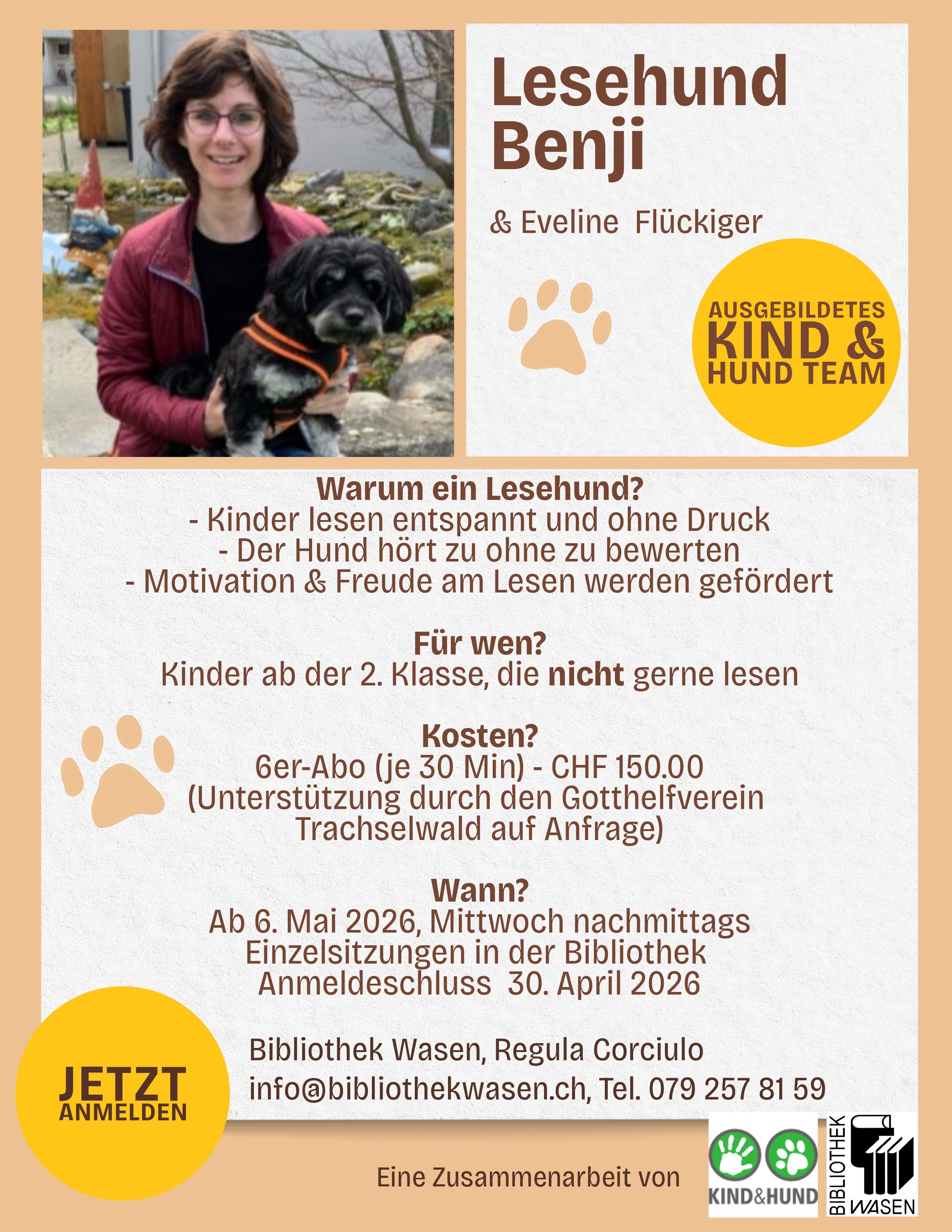 Bei Interesse melden Sie sich bis spätestens am 30. April 2026 direkt bei Regula Corciulo, Bibliothek Wasen.